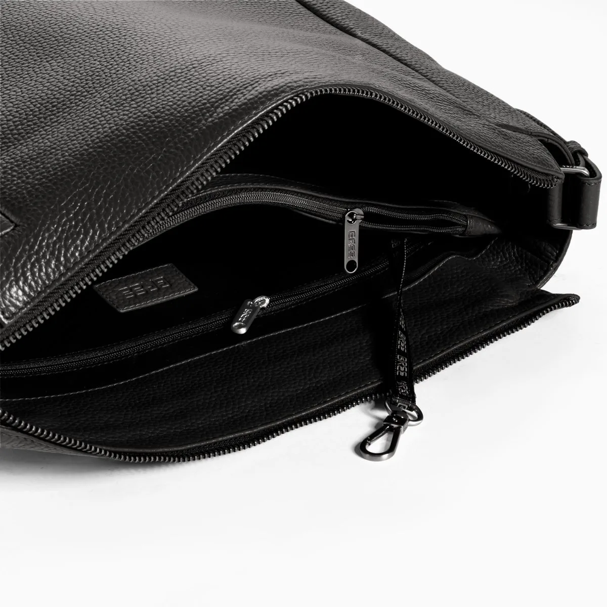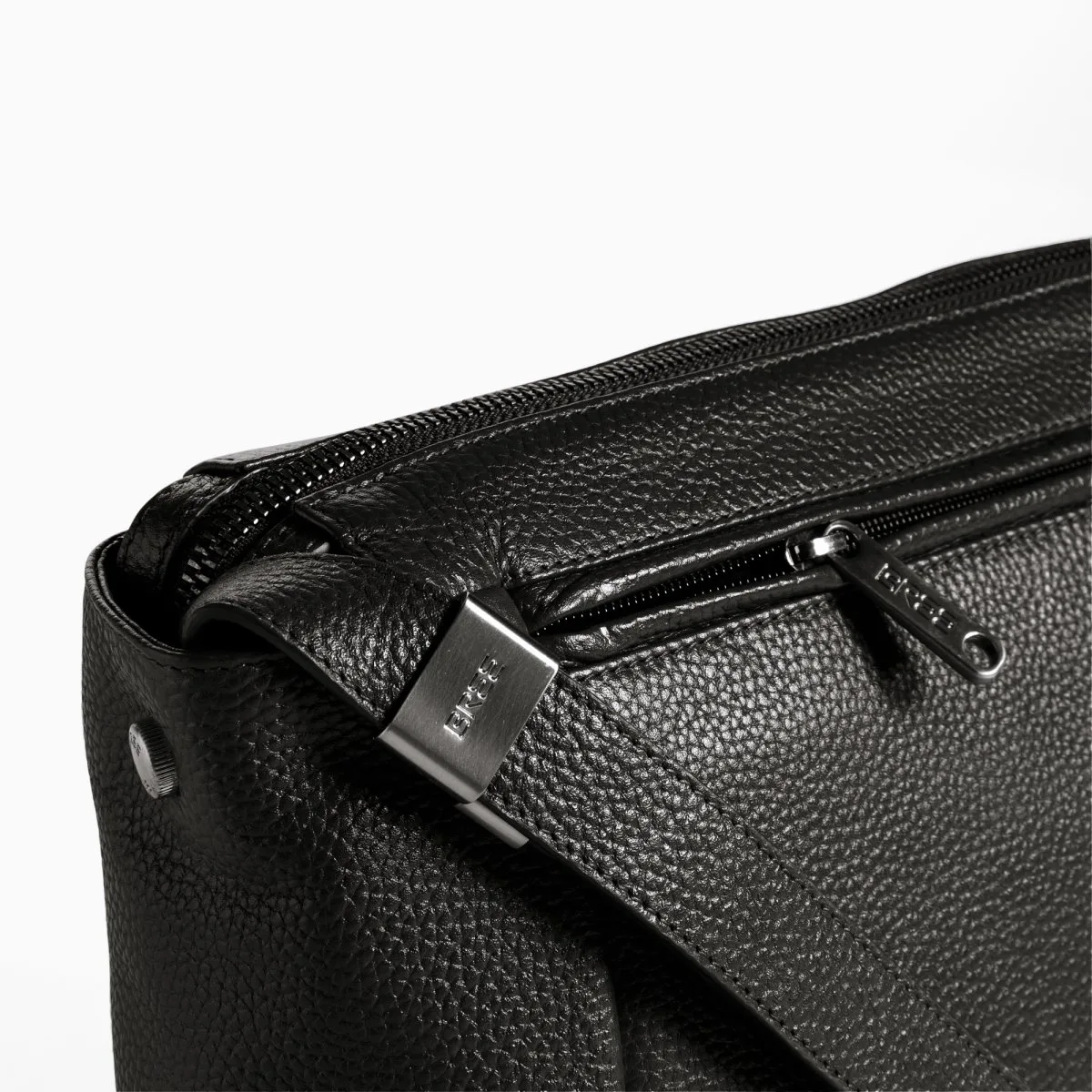 Die Tasche wurde aus genarbtem Rindsleder hergestellt und zeichnet sich durch die Metallakzente aus. Sie verfügt über einen verstellbaren Schulterriemen, ein übersichtliches Hauptfach, ein Reissverschlussfach, ein Handyfach und eine Schlüsselschlange.