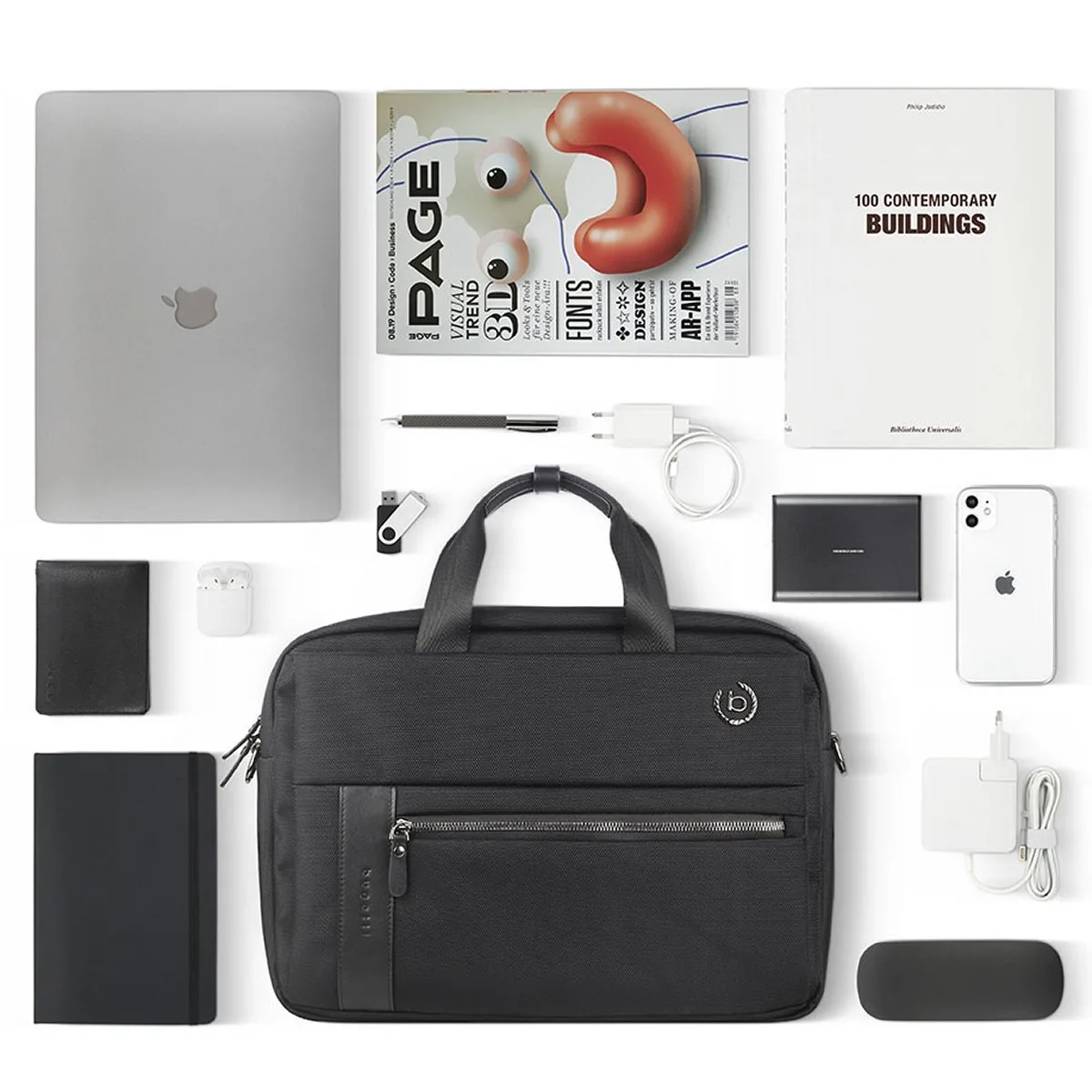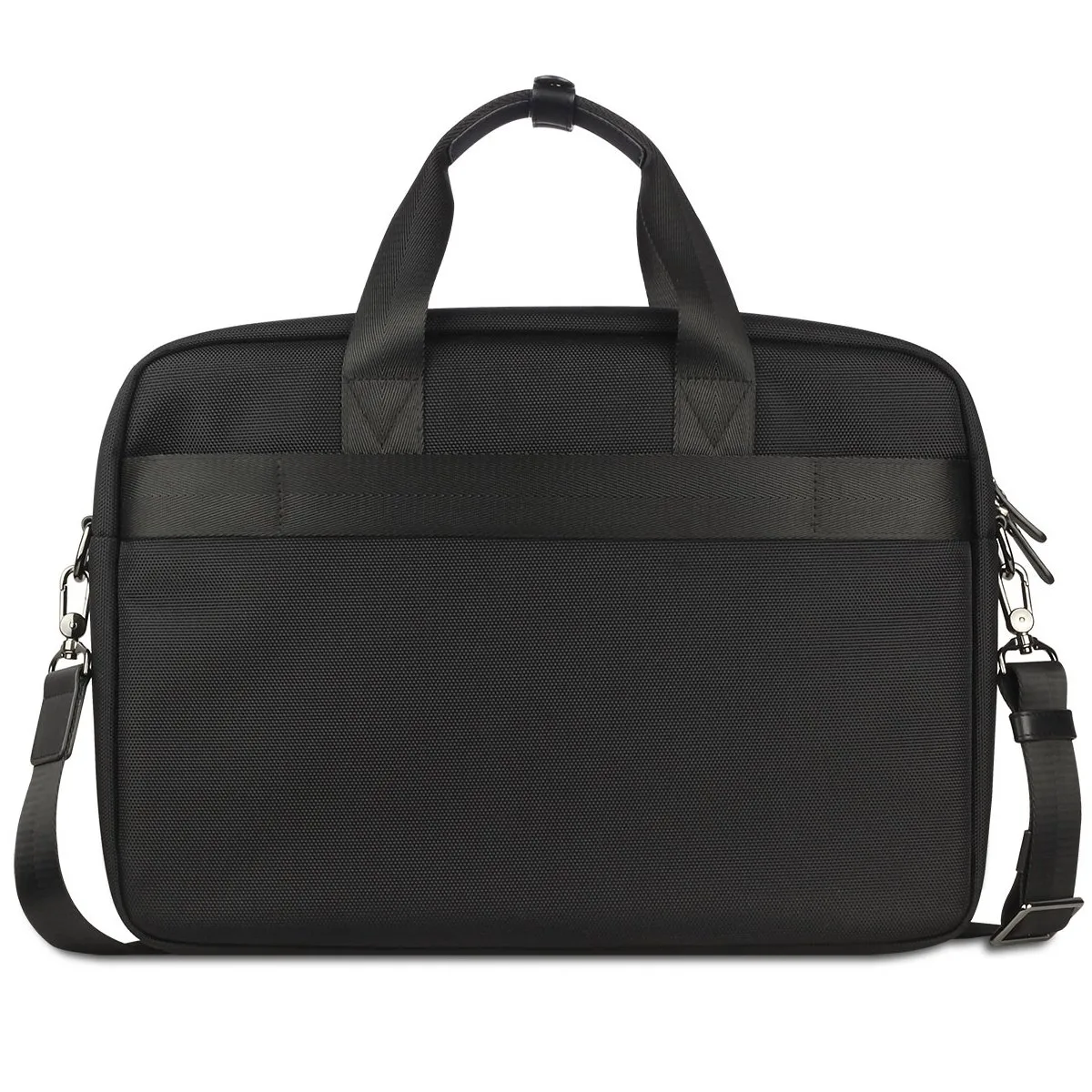 Diese schlichte, seriöse und funktionale Aktentasche von bugatti erleichtert mit seiner Vielfältigkeit ihren Geschäftsalltag. Sie besitzt nicht nur ein gepolstertes Notebookfach (16 Zoll), welches vor leichten Stössen schützt, sondern hat neben einem grossen Hauptfach mit Reissverschluss, ein Smartphone Fach, ein Stifthalter und einen abnehmbaren, verstellbaren Schultergurt. Zudem hat diese Aktentasche eine Trolleyhalterung, welche sie ideal für einen Businesstrip macht. Der Rucksack von Nero ist deshalb die perfekte Lösung für den Business-Alltag.