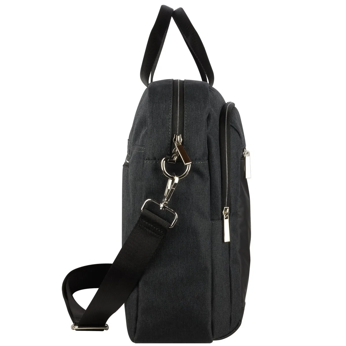 Die qualitativ hochwertige Businesstasche von bugatti begeistert mit ihrer Eleganz und Stabilität, perfekt für den Geschäftsalltag. Das gepolsterte Laptopfach schützt einen bis zu 15 Zoll grossen Laptop vor leichten Schlägen und Kratzer. Auf der Innenseite der Tasche befindet sich ein Reissverschlussfach mit PFID Schutz. Die Aussenfächer bieten noch zusätzlichen Stauraum für diverses Büromaterial. Der verstellbare Schulterriemen macht sie für jede Körpergrösse tragbar und somit auch zur perfekten Lösung für Geschäftsleute.