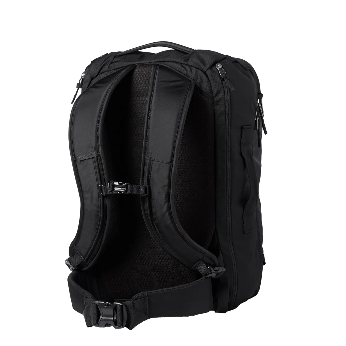 Der Rucksack besteht aus einer Mischung aus wasserfestem TPU-beschichtetem 1000D-Polyester mit einer strapazierfähigen 840D-Ballistic-Nylon-Verkleidung. Das ergonomisch geformte Trägersystem ist flach und verteilt das Gewicht bequem auf deinem Rücken. Für zusätzlichen Komfort sorgt der abnehmbare Hüftgurt, der verstellbare Brustgurt und das atmungsaktive, flexible Airmesh-Rückenpolster.