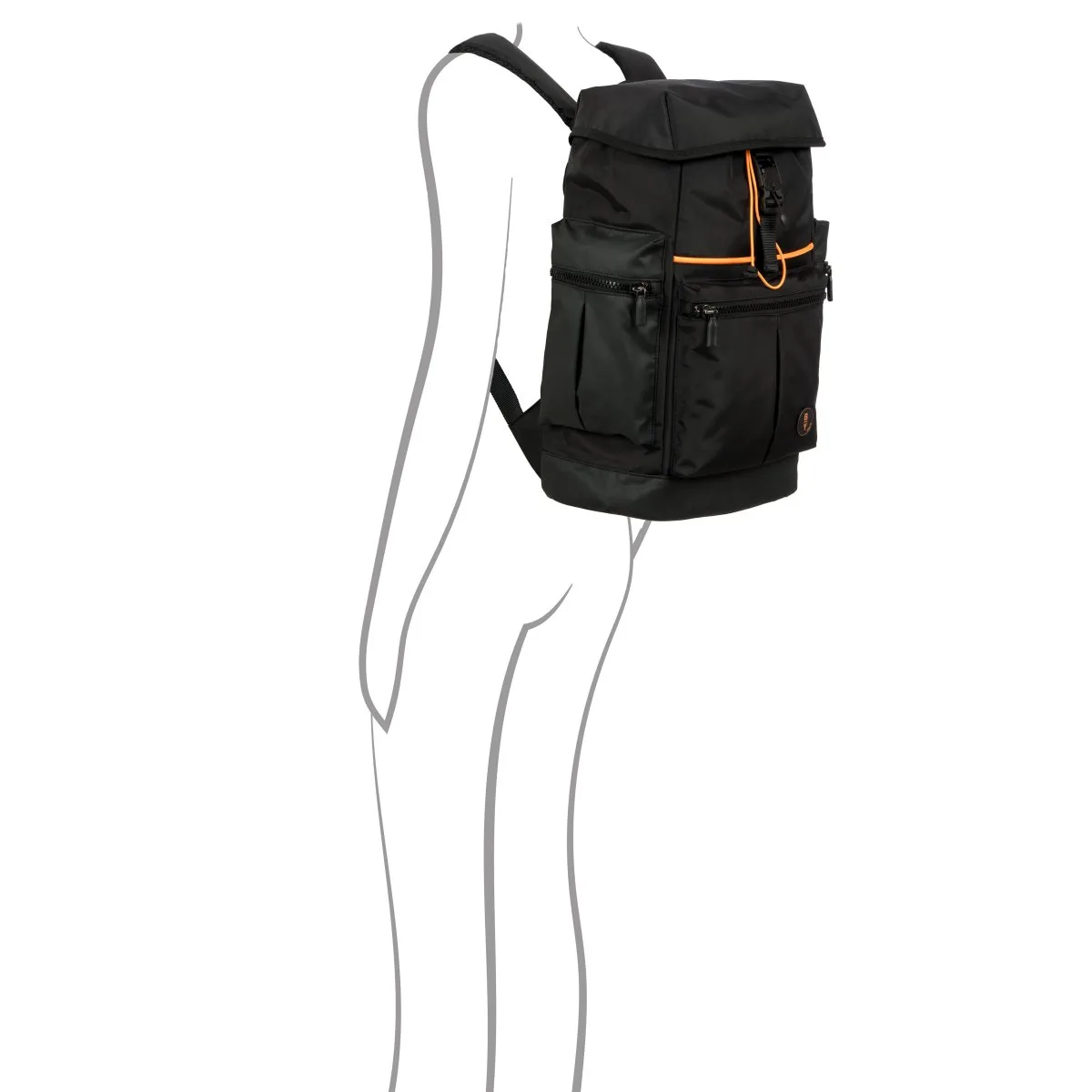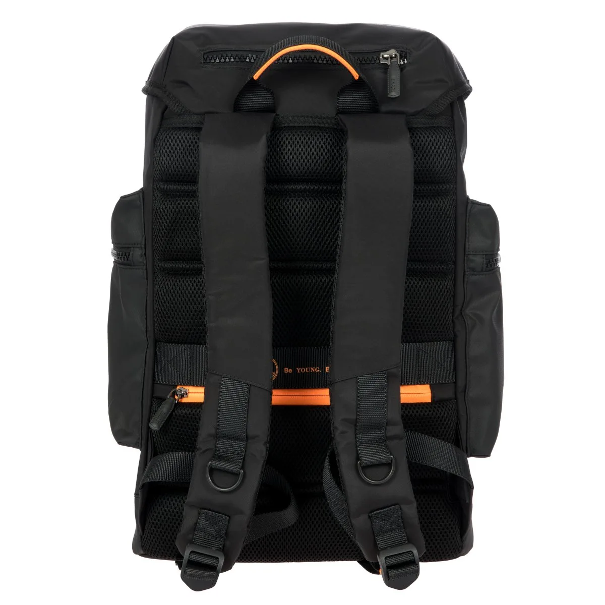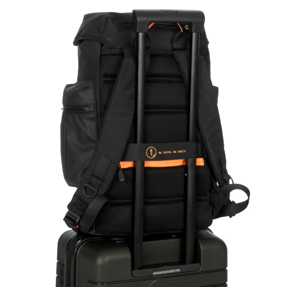 DETAILS: der LED-Streifen hat drei Modi: kontinuierlich, intermittierend und schnell intermittierend. Schiebergriff aus Gummi mit Bric’s-Logo. Öse am Tragegurt. Im Inneren des Rucksacks befinden sich ein Schlüsselanhänger mit Logo und ein Täschchen mit Karabinerhaken.