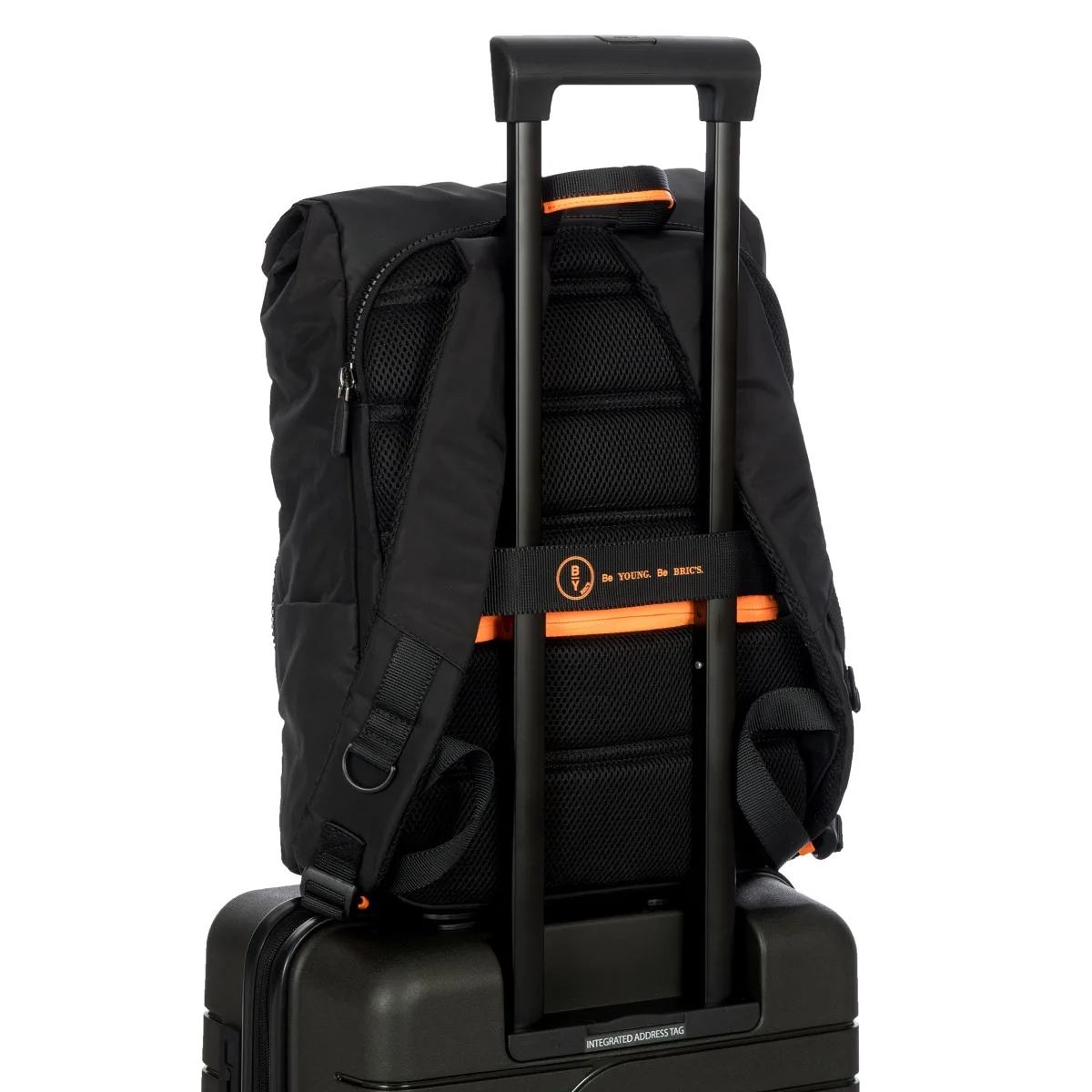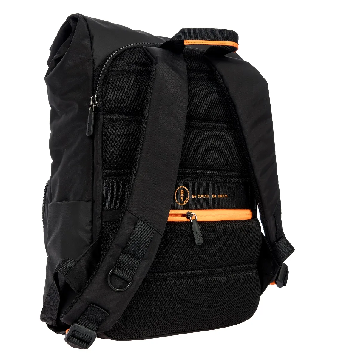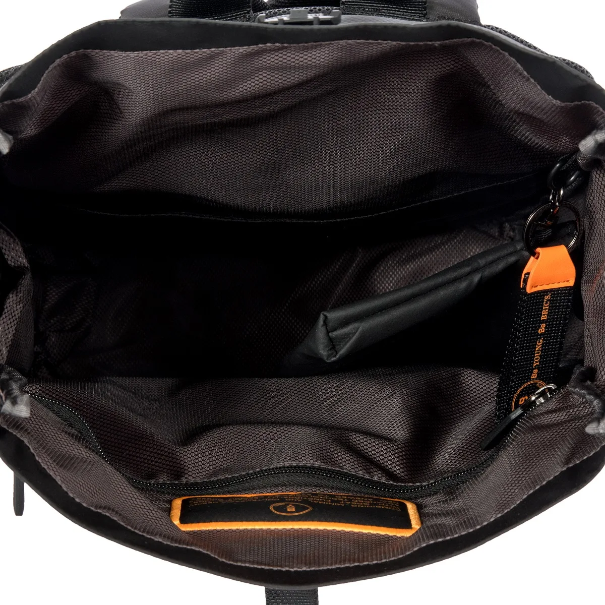Mittelgroßer Rucksack der Kollektion Eolo von Bric’s in originellem Design mit Roll-Top-Öffnung, aus Nylon mit wasserabweisender Ausrüstung.
