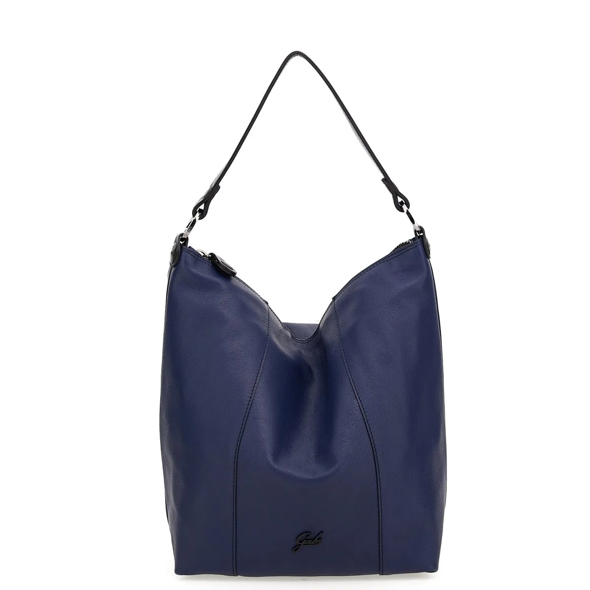 Wandelbare Umhängetasche von Gabs mit einem Riemen aus mattem Kalbsleder, Reißverschluss, Baumwollfutter und Innenfächer mit Reißverschluss, Schulterriemen aus Leder.