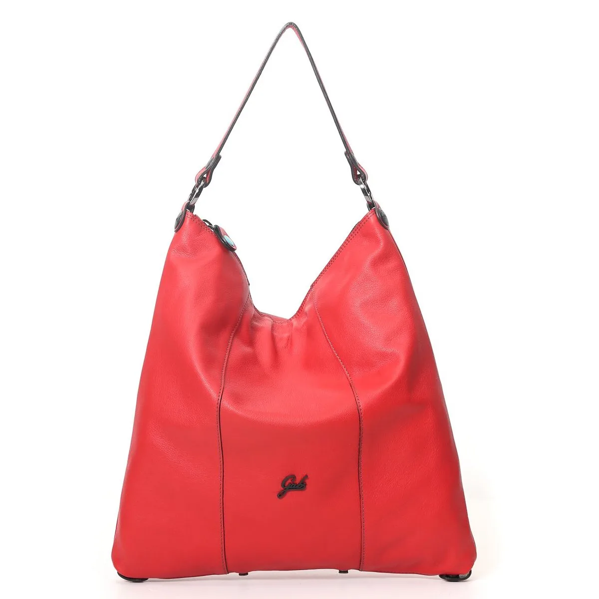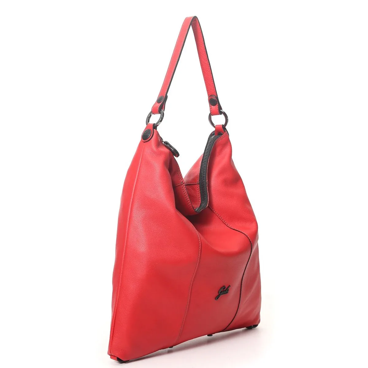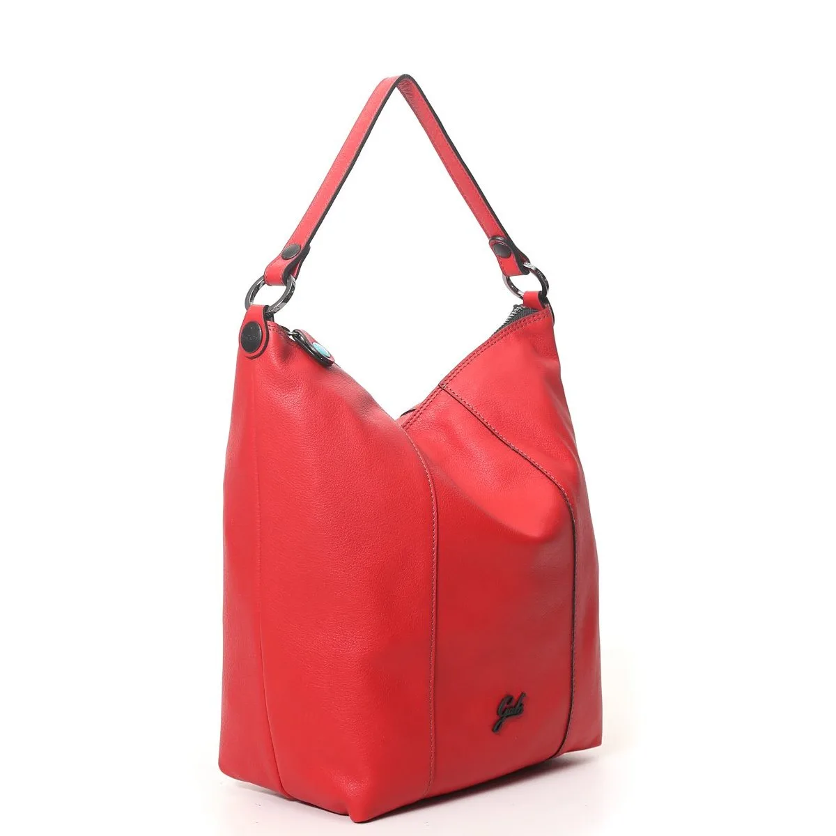 Wandelbare Umhängetasche von Gabs mit einem Riemen aus mattem Kalbsleder, Reißverschluss, Baumwollfutter und Innenfächer mit Reißverschluss, Schulterriemen aus Leder.