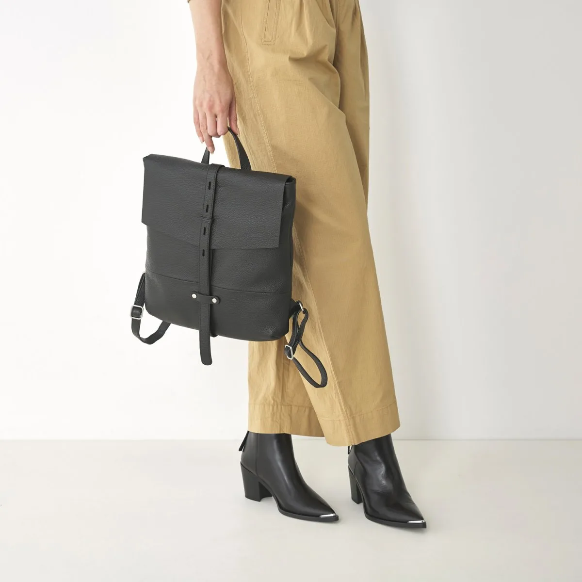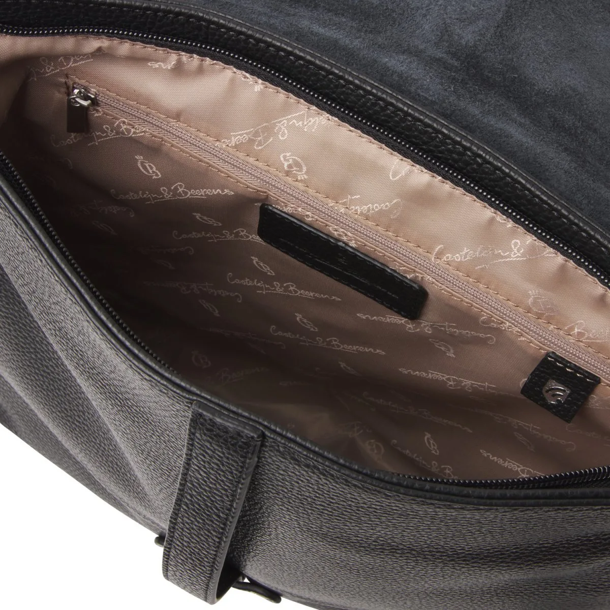 Gesso Rucksack aus der Damentaschenkollektion Babette. Ein eleganter, kompakter Rucksack mit lässiger Lasche. Das Hauptfach lässt sich mit einem Reißverschluss schließen und besitzt neben dem RFID-Reißverschlussfach auch zwei praktische Einsteckfächer. Im speziellen RFID-Reißverschlussfach sind Ihre Bank-, Kreditkarten vor Skimming geschützt. Ein zusätzliches Reißverschlussfach auf der Rückseite bietet noch mehr Platz zum Aufbewahren. Alle Lederwaren aus der eleganten Kollektion GESSO sind aus italienischem Rindleder aus Venetien gefertigt und nachhaltig gemäß den Richtlinien der Leather Working Group (zu Deutsch Arbeitsgruppe Leder) gegerbt. Das herrlich weiche Leder besitzt eine elegante Narbung und ist in Seidenglanz ausgeführt. Das Logo von Castelijn & Beerens ist subtil in die gebürsteten Nickelmetallakzente eingearbeitet.