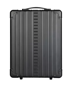 Außenschale aus Vollaluminium, das für für absolute Formfestigkeit sorgt. 45 oder 180° aufklappbar. 1x 3-Seiten-Reissverschluss, Tragegriff oben, 4 Bodenfüße aus ABS. Intelligente Inneneinrichtung mit Notebookfach, kleinem Reißverschlussfach, Stiftehalter und Visitenkartenfach. Herausnehmbares Dokumentenfach im Korpus.