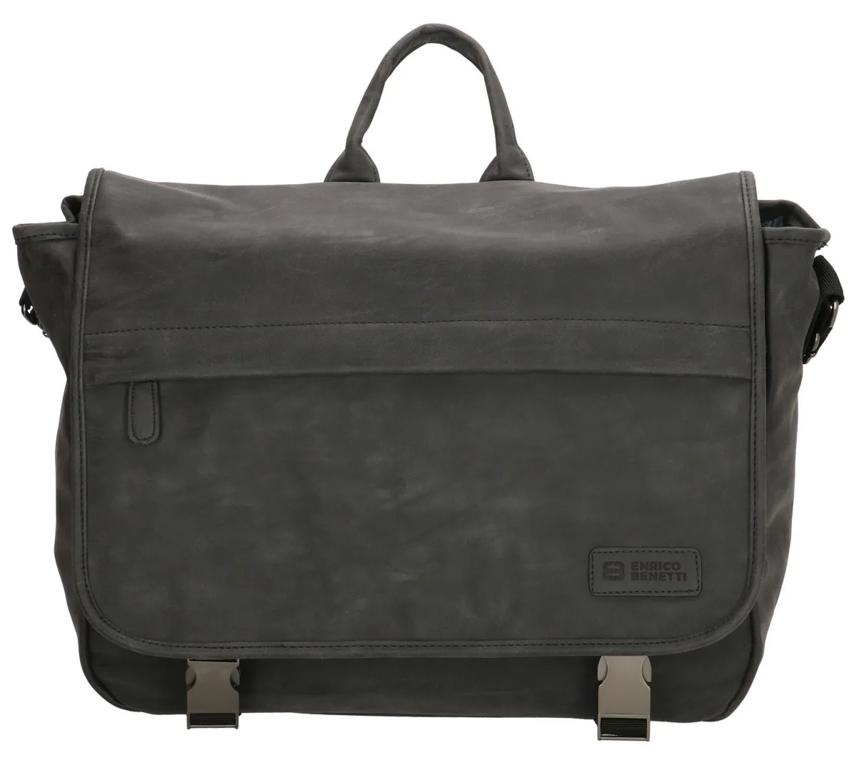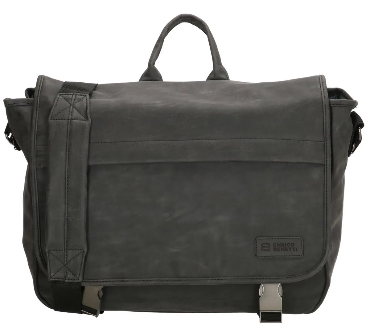 Die robuste und solide Business-Laptop-Umhängetasche aus der Madrid-Serie von Enrico Benetti ist ideal für Schule, Arbeit oder Alltag. Gefertigt aus Kunstleder, versehen mit Metalldetails. Ein Reißverschlussfach auf der Klappe, ein Hauptfach mit Organizer für Kleinkram sowie ein Laptopfach 15″. Griff an der Oberseite zum einfachen Anheben sowie ein verstellbarer Schultergurt zum Tragen über der Schulter.