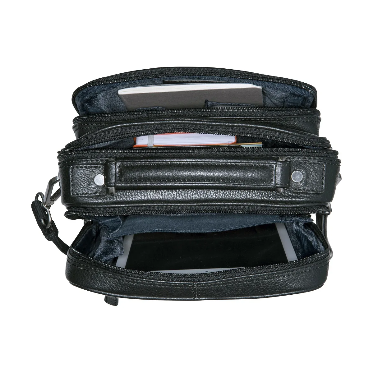 Für einen Nachmittag in Berlin mit anschließendem Theaterbesuch ist die Berlin Umhängetasche M der Marke Leonhard Heyden gerade richtig. Die zwei Hauptfächer sind unerwartet geräumig und bieten jede Menge Platz. Um den Überblick zu behalten, können Hab und Gut in den dafür vorgesehenen Organizer eingeordnet werden. Ein besonderes Merkmal der Umhängetasche sind die sichtbaren Reißverschlüsse auf der Front, mit denen Sie sich sportlich ins Berliner Nachtleben stürzen können.