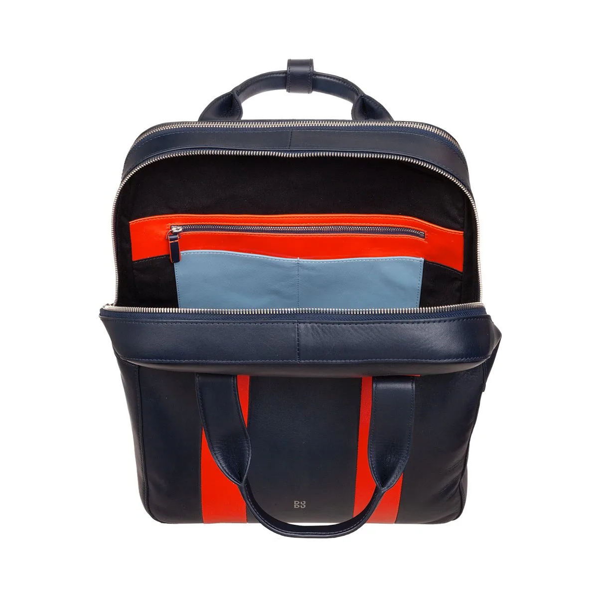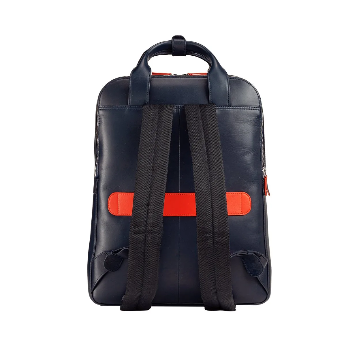 Dieser Lederrucksack verfügt über ein separates Notebookfach (tragbare Geräte von Apple bis zu 16 Zoll), ist gefertigt aus Kalbsleder und mit gepolsterten Trageriemen aus Nylon und mit praktischem Schlüsselriemen und Trolley-Sleeve ausgestattet. Allgemeine Ausstattung: 1 Außenfach mit Reißverschluss, 1 Außenfach, 5 Innenfächer, 1 Schlüsselring, 1 Stifttasche und 1 Innentasche mit Reißverschluss