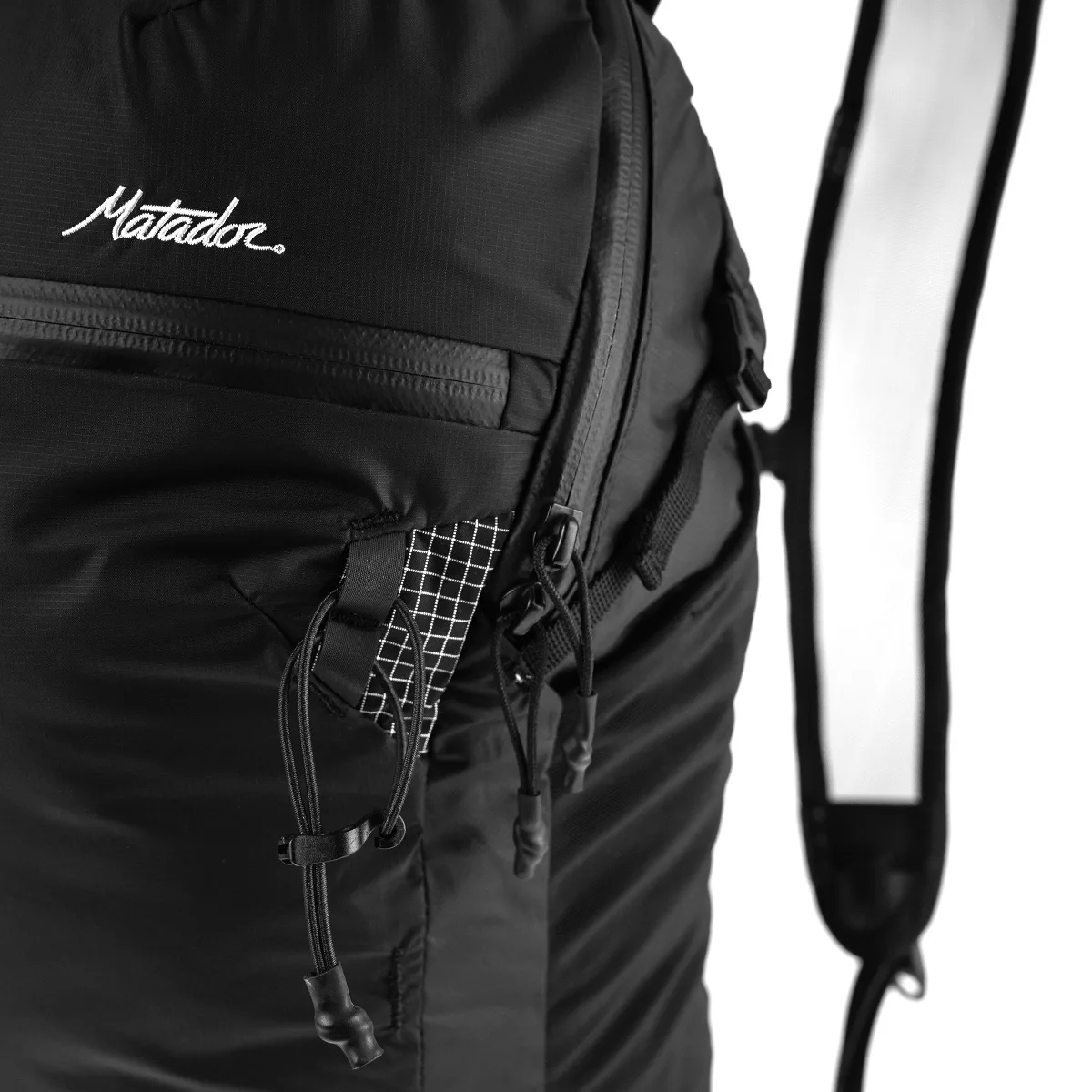 Ultraleichtes, UHMWPE-verstärktes Robic®-Nylon sorgt für außergewöhnliche Strapazierfähigkeit, während die UTS-Beschichtung, versiegelte Nähte und abdichtende Reißverschlüsse ein wetterfestes Design ergeben. Zu den alpintauglichen Merkmalen gehören Materialschlaufen, eine Shockcord-Aufnahme für Werkzeug und Kompressionsriemen mit Schnallen. Sternum Strap und gewichtsverteilende Schultergurte sorgen für einen agilen und ausgewogenen Sitz. Im mitgelieferten Mesh-Kompressionssack lässt sich der Rucksack für unterwegs verstauen.