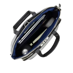 Smartphone-/Kartenfach auf der Vorderseite mit Reißverschluss für Reisekarten, Ladekabel und andere kleine Gegenstände. Hauptfach für Geräte bis zu 13″ und Ladekabel.