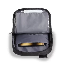 Der Body Bag aus der Serie PURE ist ein stilvoller Begleiter im Unisex-Look. Das nachhaltig produzierte, umweltschonende Material ist wasserabweisend und zudem fein in der Haptik. Inklusive Masken- und Hygienefach mit abwaschbarer Folie für alles, was hygienisch verwahrt werden soll. Handy-/Tabletfach, Kartenfach mit RFID-Blocker, Tragegurt und Gürtelschlaufe.