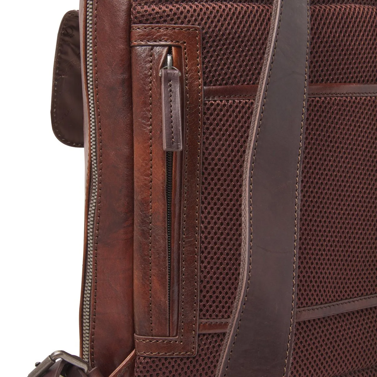 Weiterer Tragekomfort bieten die verstärkte Rückseite und ein stabiler, verstellbarer Schulterriemen aus Leder. Das Smart-Sleeve ist die Lösung, wenn Sie den Rucksack auf einem Trolley mitführen möchten. Hergestellt aus pflanzlich gegerbtem Stierleder, das von Hand gefärbt wird. Es unterstreicht das natürliche Narbenbild des Leders. Für den Griff und den Schulterriemen wurde robustes, pflanzlich gegerbtes Ruderleder verwendet.