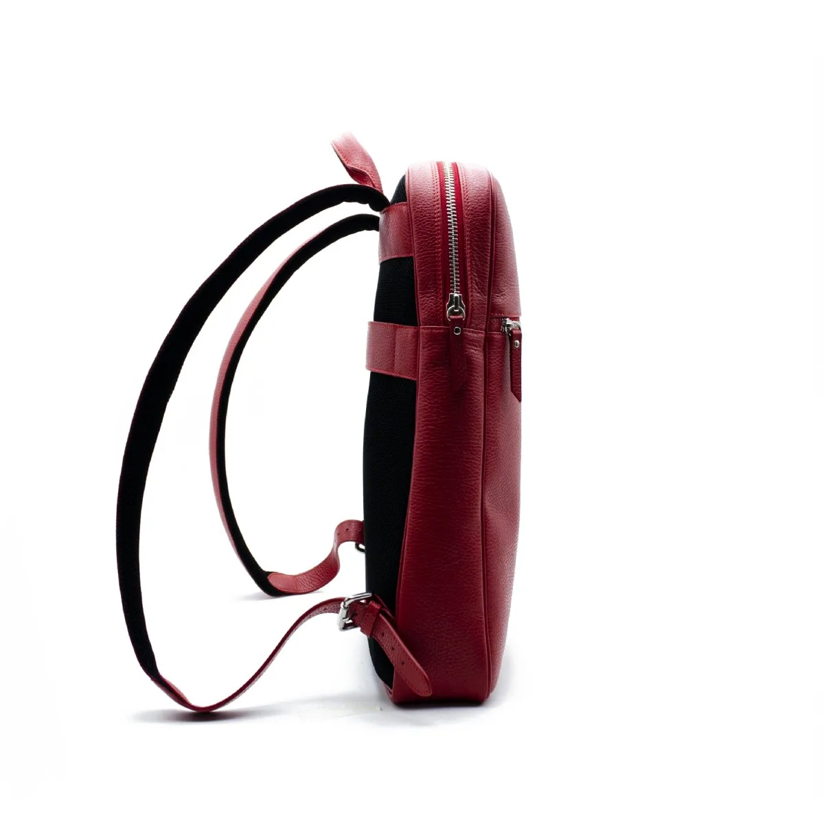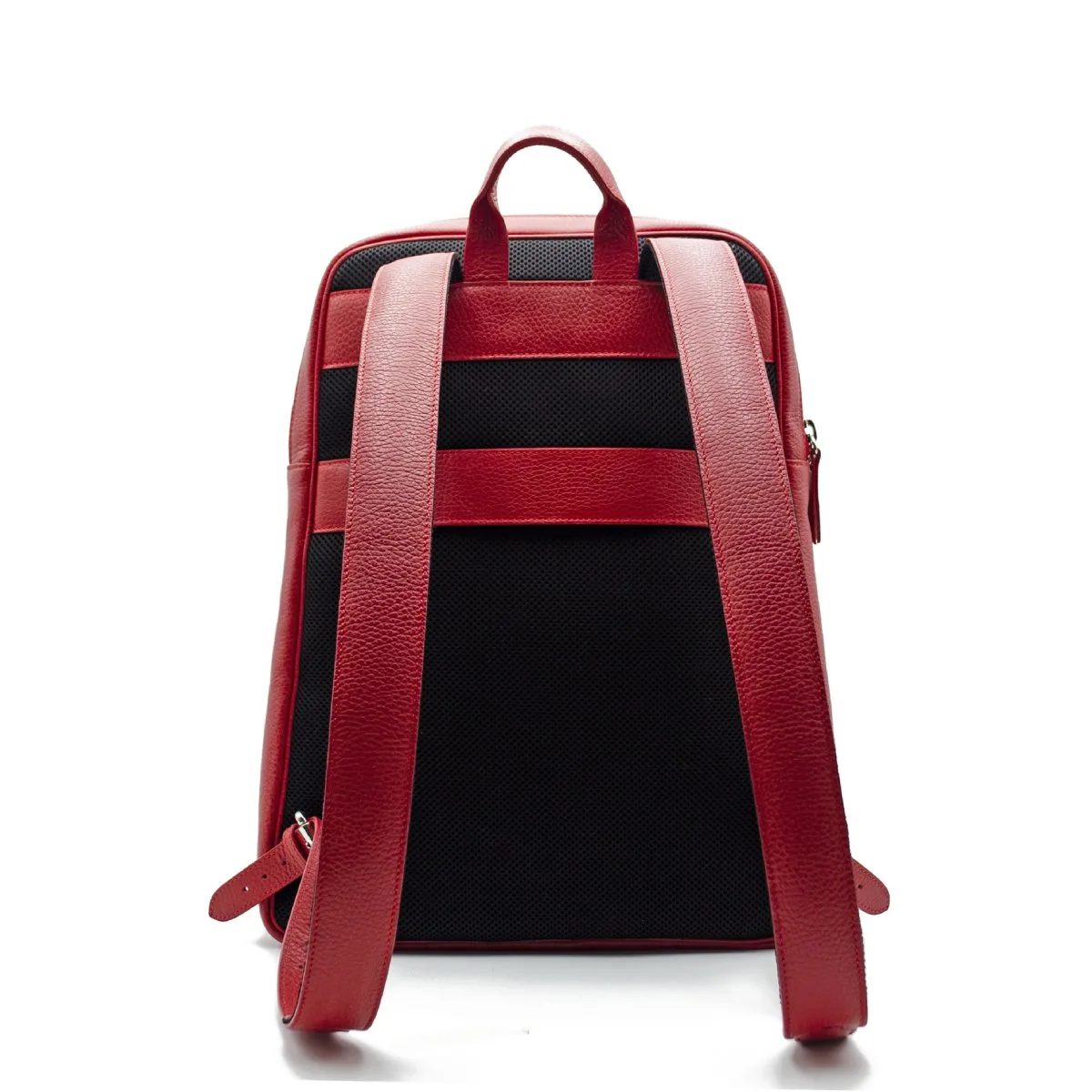 Rucksack ganz aus genarbtem Leder. Er verfügt über eine flache Fronttasche, die mit einem Reißverschluss aus poliertem Metall verschlossen wird und in der Sie Ihre Sachen aufbewahren können. Das Innere ist mit einem geräumigen Hauptfach mit PC-Halterung und mehreren Taschen ausgestattet. Er ist leicht und handlich und hat gepolsterte und raffinierte Schultergurte, die für mehr Komfort sorgen. Auf der Rückseite des Rucksacks befindet sich ein Lederband, das für einen Trolley geeignet ist, so dass er bei einem Flug bequemer und weniger lästig ist.