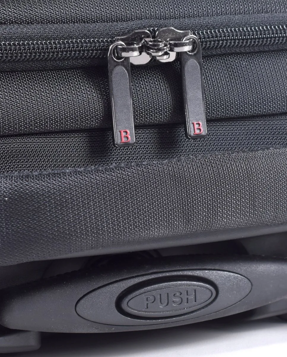 Ergonomischer Griff, zwei Außentaschen mit Reißverschlüssen, Trolley System, Sicherheitsvorhängeschloss