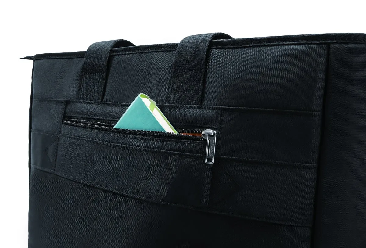 Diese kompakte Tasche eignet sich für die tägliche Fahrt zur Arbeit und jede Art von Geschäftsreise. Sie ist schlanker und femininer als eine Laptoptasche und vereint die klassische Funktion einer Aktentasche mit einem modernen Stil. Diese Handtasche perfektioniert den eleganten Look jeder Geschäftsfrau und ersetzt traditionelle Aktentaschen oder Rucksäcke. Die Tasche schützt den Laptop rundum und bietet viel Stauraum. Die Details: Gepolstertes Fach für Laptops bis 15,6 Zoll. Weiche, breite Träger, die bequem sind und nicht rutschen. Trolley-Lasche, Innenfächer für Regenschirm, Wasserflasche, Portemonnaie, Schuhe und mehr. Langlebige Reißverschlüsse und Metallzieher, Kontrast-Futter