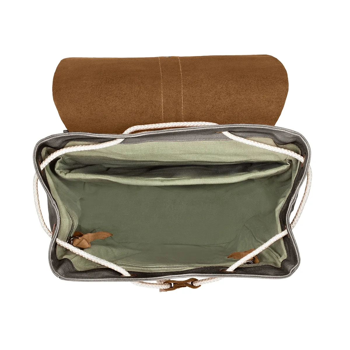 Das dicke, robuste Canvas sowie Rucksackdeckel und Applikationen aus echtem, naturbelassenen, leicht geöltem Rindsleder sind ein echter Blickfang und sorgen für langlebigen jahrelangen Rucksack-Spass.