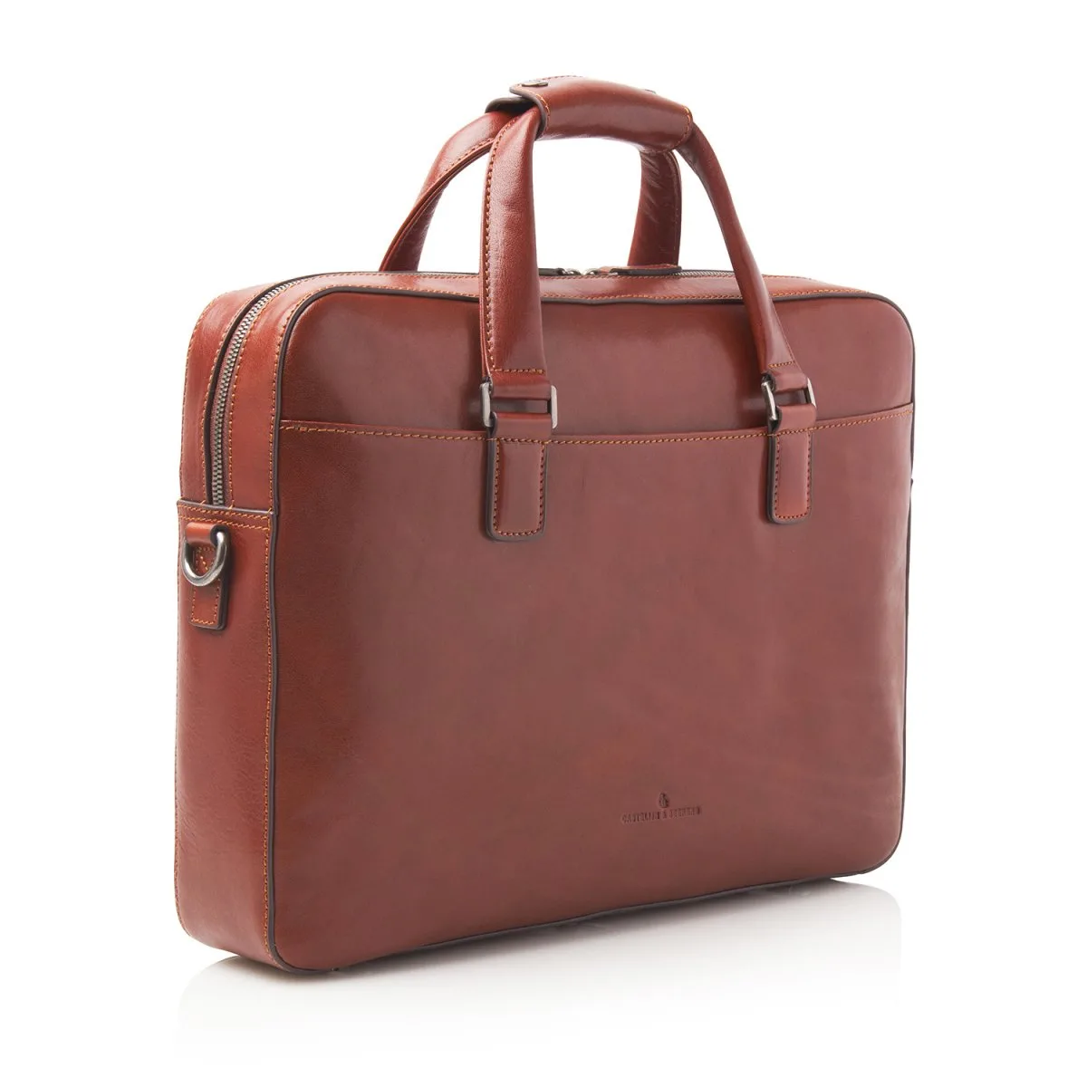 Absolute Klasse. Diese Luxus lederne Laptoptasche verfügt über ein stoßabsorbierendes 15,6″ Laptop- und Tablet-Fach, ein kompaktes Fach für A4-Mappen, Unterlagen und Laptop-Zubehör, damit Sie einen prägenden ersten Eindruck hinterlassen. Im speziellen RFID-Reißverschlussfach sind Ihre Bank-, Kreditkarten und Ausweise vor Skimming geschützt. Die lederne Laptoptasche verfügt über einen abnehmbaren ledernen Schulterriemen sowie einen praktischen Trolley-Riemen. Sowohl in der Hand, auf der Schulter oder über dem Trolley-Henkel zu tragen. Gefertigt aus wunderschönem, pflanzlich gegerbtem Stierleder mit natürliche Narbenbild des Leders. Zeitlos, klassisch und exklusiv.