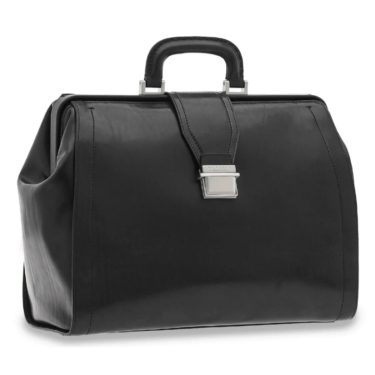 Zeitlos schöne Aktentasche im Stil der klassischen Arzttasche. Innenausstattung: Unifarbenes Innenfutter aus Baumwolle, geräumiges Hauptfach mit extra Laptop Fach.