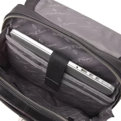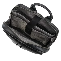 Dieser stilvolle Lederrucksack hat einen bequemen Griff und verfügt über ein verstärktes 15,6-Zoll-Laptopfach und Tabletfach, diverse Reißverschlussfächer und ein praktisches Organizerfach für Smartphone, Kugelschreiber, Visitenkarten usw. Im speziellen RFID-Reißverschlussfach sind Ihre Bank-, Kreditkarten und der Ausweis vor Skimming geschützt. Zusätzlicher Tragekomfort dank der verstärkten Rückseite und stabiler, verstellbarer Schulterriemen aus Leder. Das Smart-Sleeve ist die Lösung, wenn Sie den Rucksack auf einem Trolley mitführen möchten. Gefertigt aus hochwertigem, italienischem Rindsleder.