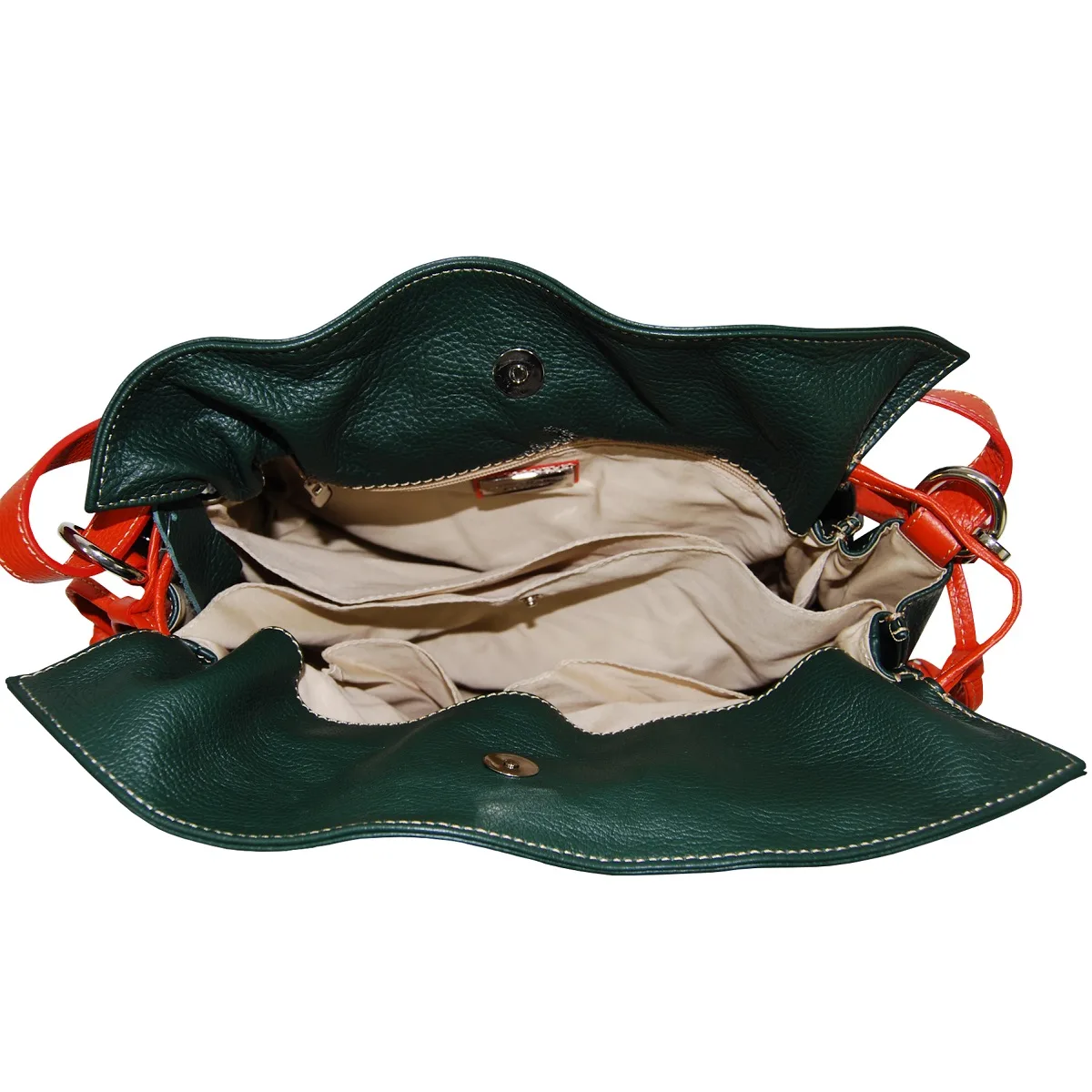 Seitentasche mit Reissverschluss, zwei offene Taschen, drei Ablageflächen